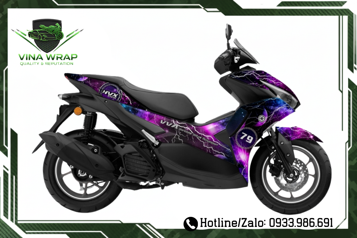 Thiết kế bám sát form xe, xử lý khéo các mảng tem ở phần hông và đầu xe, đảm bảo ôm sát bề mặt và không phá dáng nguyên bản. Màu sắc được phối theo tông thể thao, nổi bật nhưng vẫn cân đối, giúp chiếc NVX 2020 trông cá tính và khác biệt hơn.